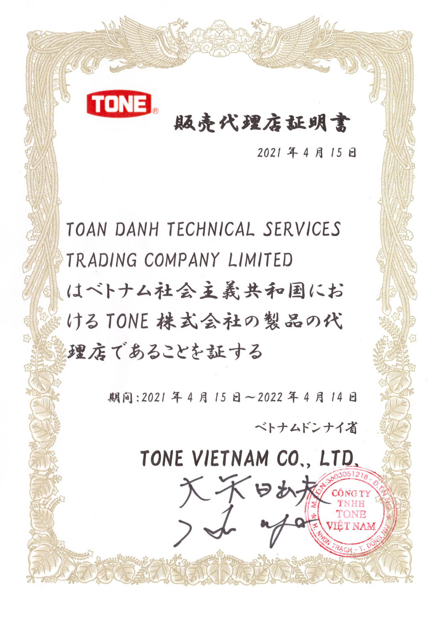 Hiện tại Toàn Danh là nhà nhập khẩu và phân phối độc quyền các sản phẩm có thương hiệu nổi tiếng như: INGCO, WADFOW, DCA, TPC, AGP, ASAK, HELI, MINBAO, GONGYI, YONSKY, SINOYON, HAOMAI,…