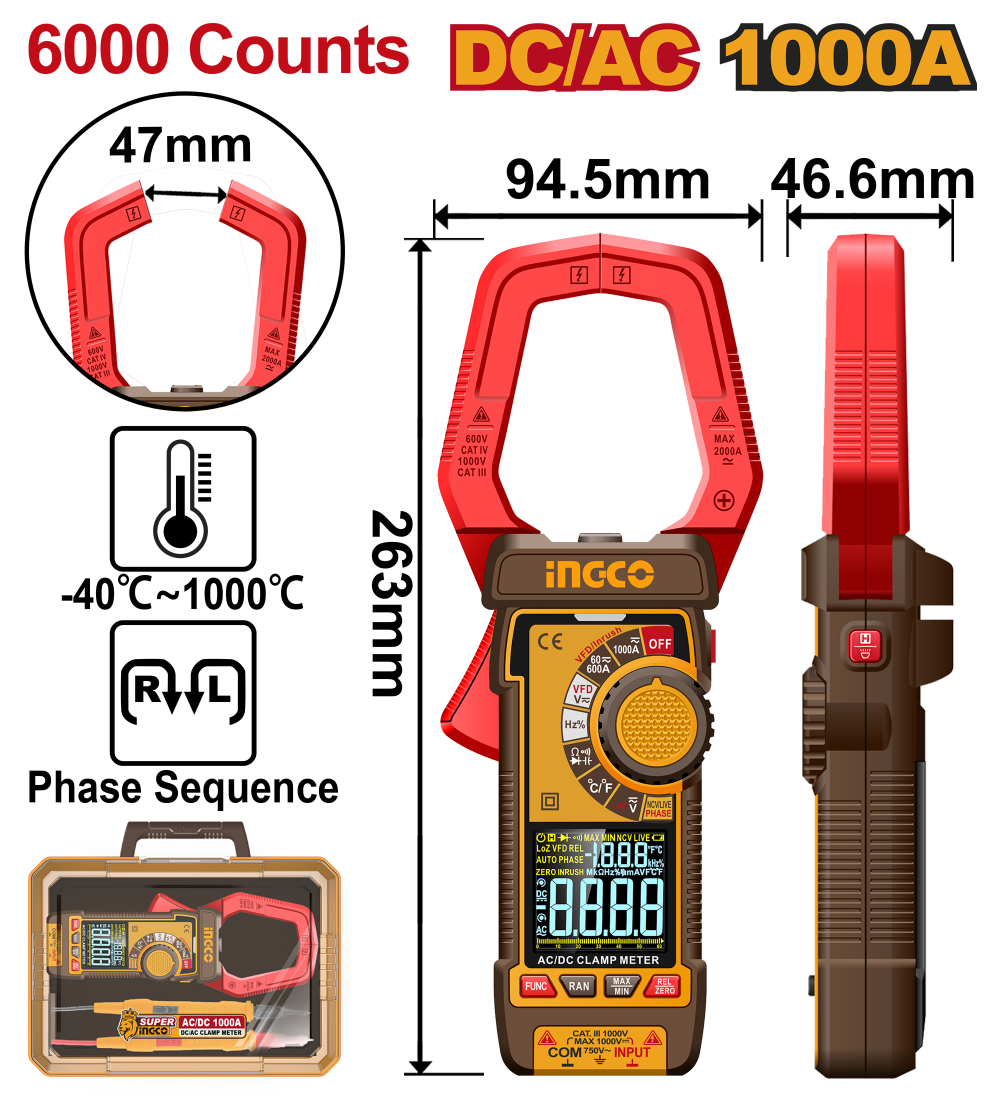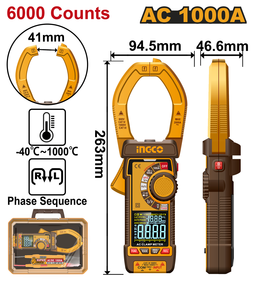 Đồng hồ kẹp kỹ thuật số AC/DC 1000A-6000 số đếm