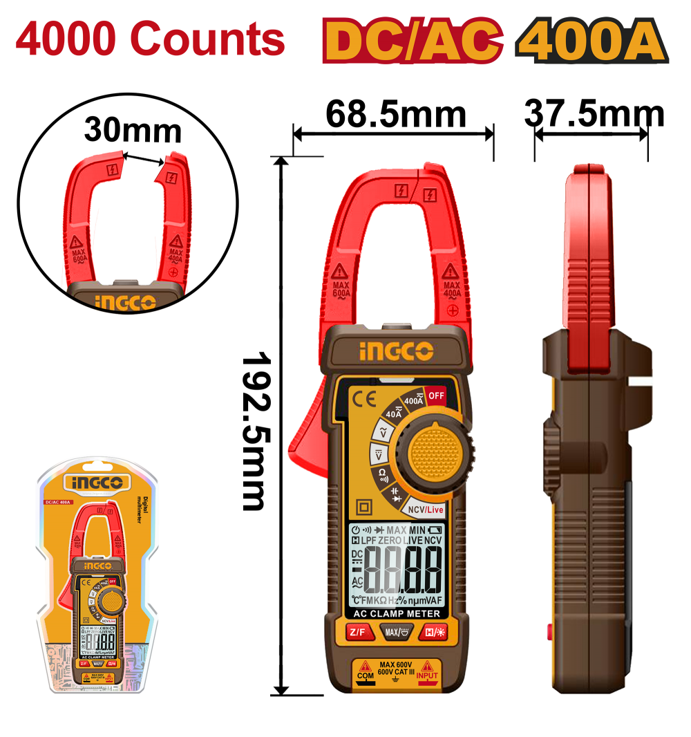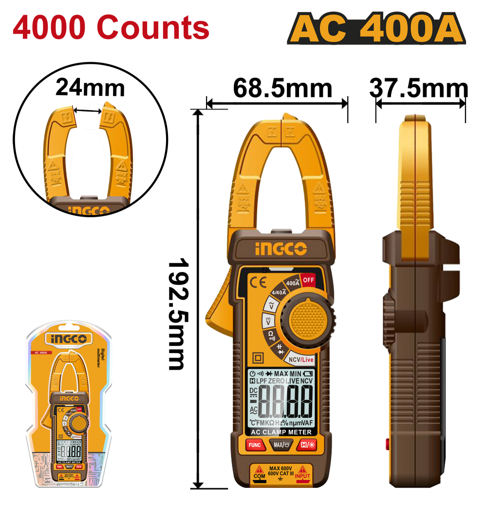 Đồng hồ kẹp kỹ thuật số AC/DC 400A-4000 số đếm