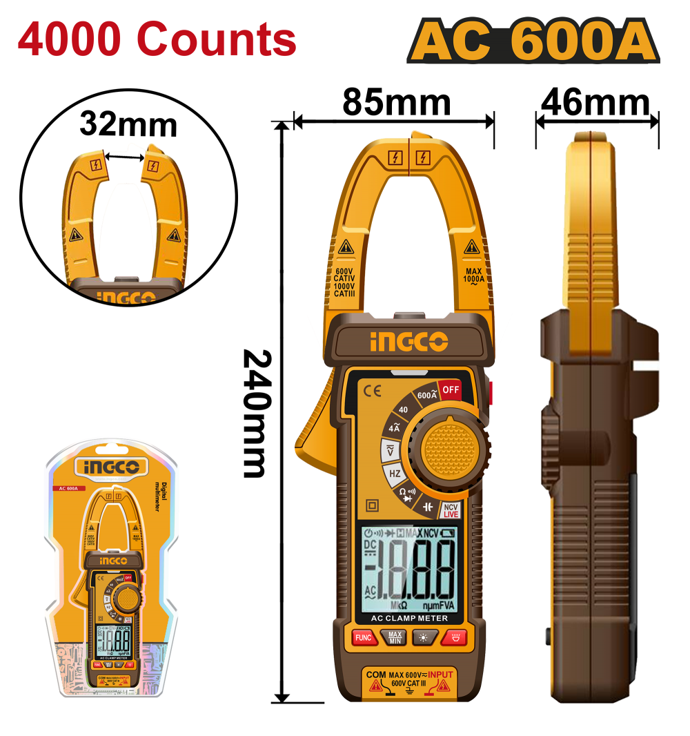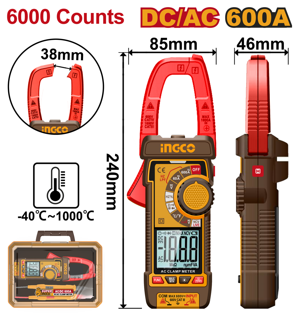 Đồng hồ kẹp kỹ thuật số AC/DC 600A-6000 số đếm