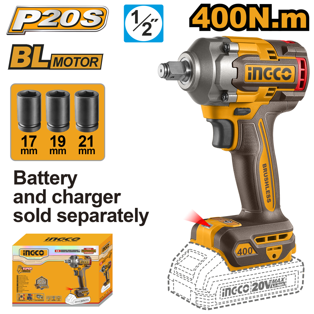 Máy siết bu lông dùng pin 20V-400Nm (không kèm pin và sạc)