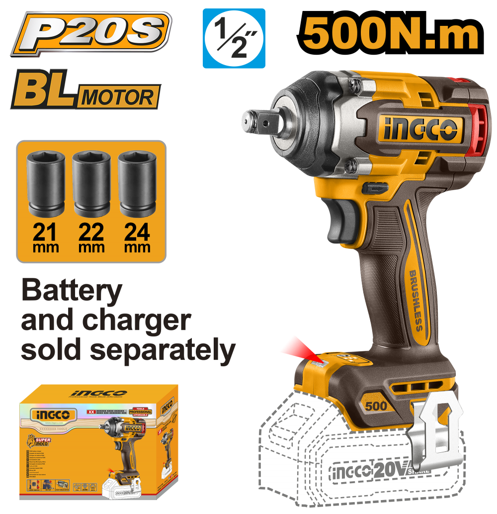 Máy siết bu lông dùng pin 20V-500Nm (không kèm pin và sạc)