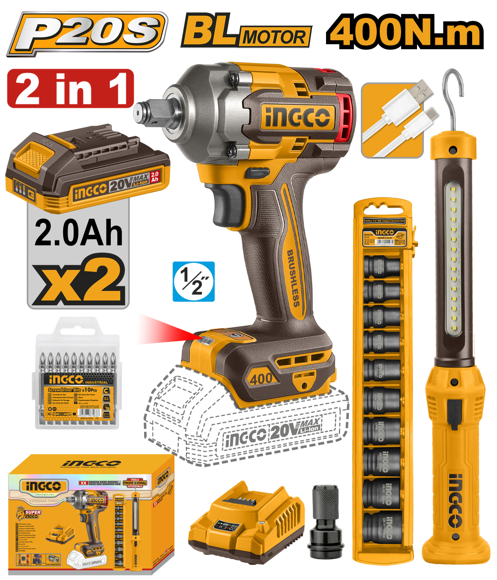 Bộ combo Máy siết bu lông dùng pin 20V (CIWLI2040) & đèn pin (HWLI35261)