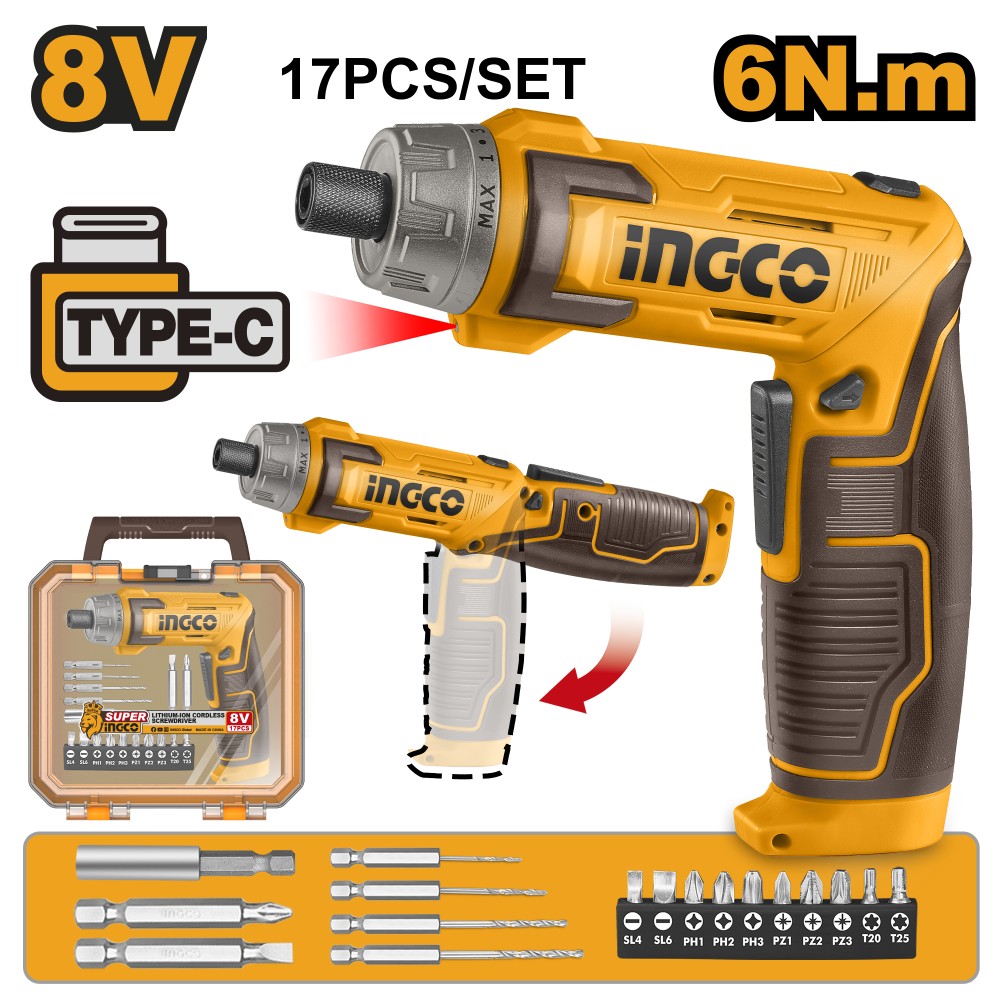 Máy siết vít dùng pin 8V-6Nm (kèm 17 phụ kiện và không kèm cáp sạc)