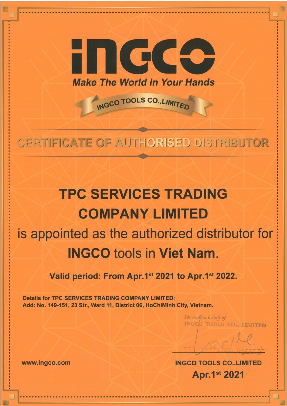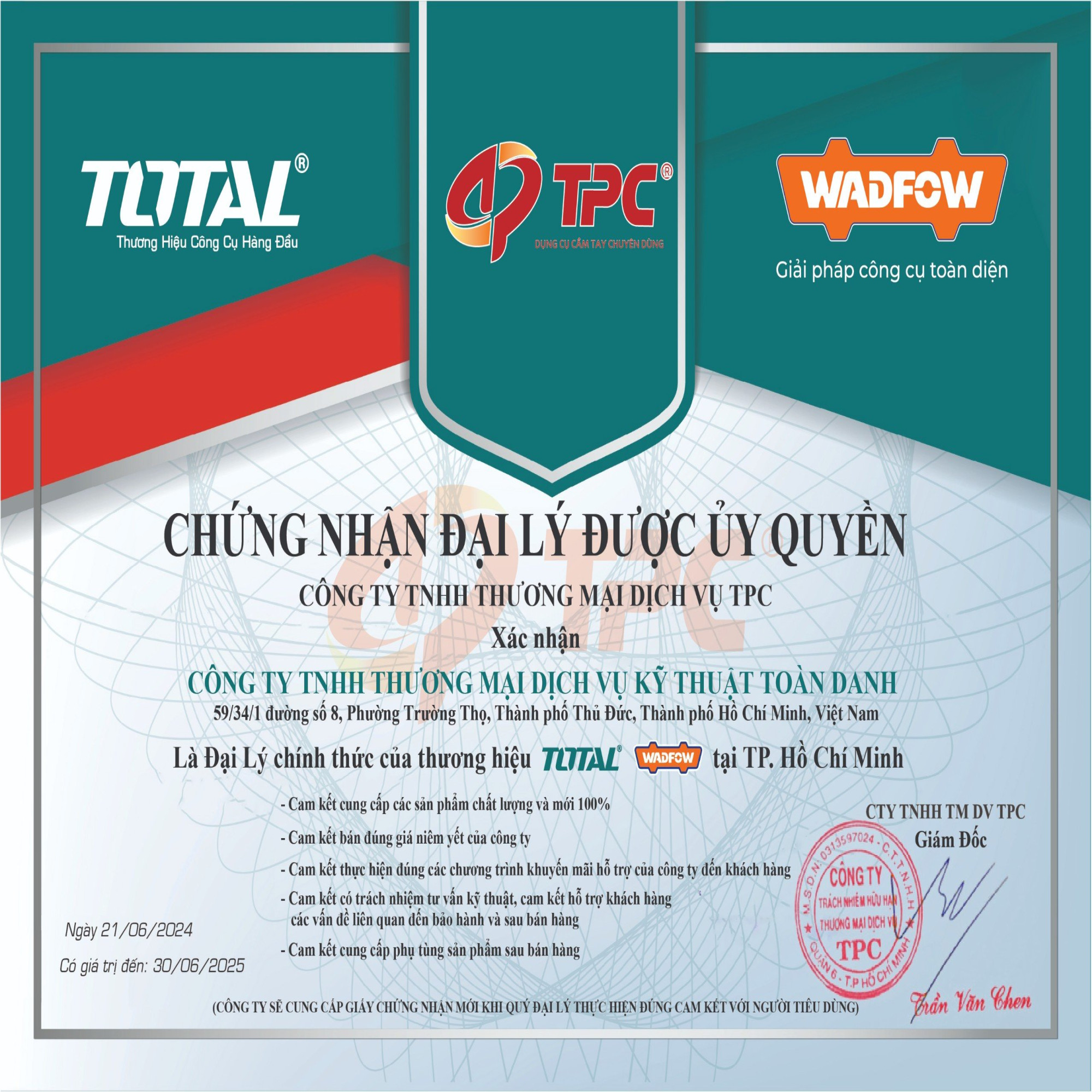 Hiện tại Toàn Danh là nhà nhập khẩu và phân phối độc quyền các sản phẩm có thương hiệu nổi tiếng như: INGCO, WADFOW, DCA, TPC, AGP, ASAK, HELI, MINBAO, GONGYI, YONSKY, SINOYON, HAOMAI,…